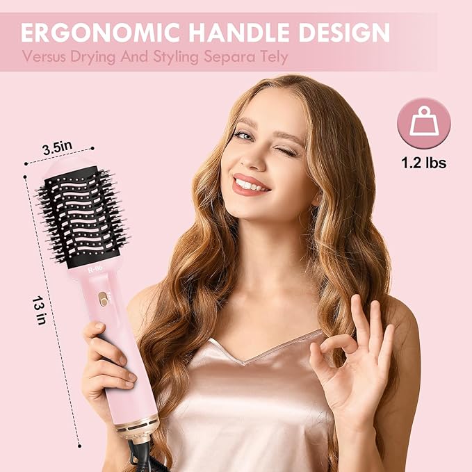 Hair Dryer Brush Blow Dryer Brush in One, 4 in 1 Hair Dryer and Styler Volumizer with Oval Barrel, Professional Salon Hot Air Brush for All Hair Types, Bright Pink