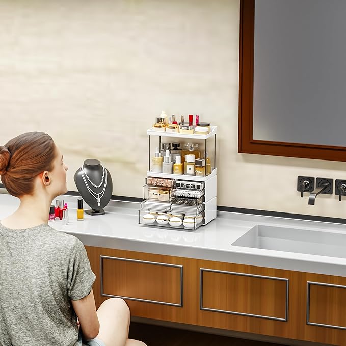 - 【Perfect Gift to Every Life-Loving Girls】You're beautiful as you are. Beauty isn't something to seek - It lies within. So is this vanity organizer - transparency and White mix to redefine sophistication and luxury, where every glance is met with awe, and every touch resonates with the poetry of opulence