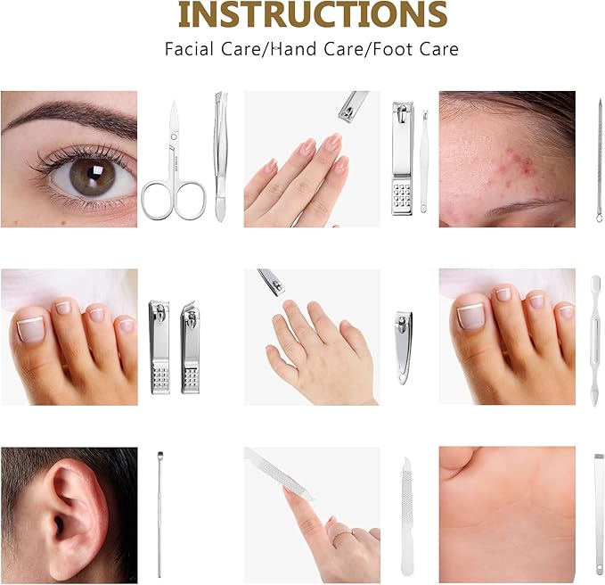 - What's Included: you will receive 12 sets of professional manicure kits, including toenail tools, multi functional hand care, facial care and foot care tools, can satisfy your daily use and replacement demands