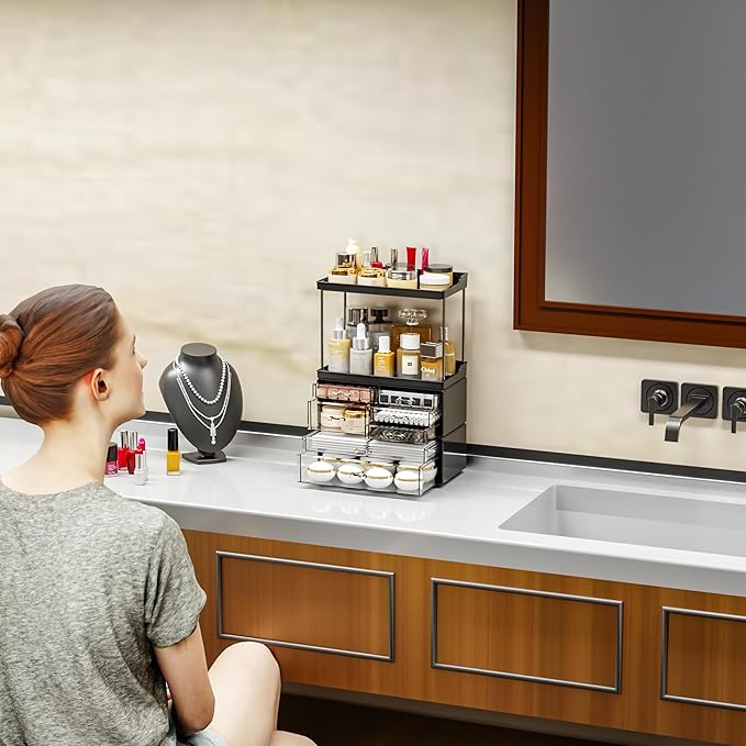 - 【Multi purpose storage】to flexibly fit into your dresser,Bathroom,Bedroom,living room,or wherever you fancy, catering to your multipurpose storage needs,as a beauty organizer,vanity shelf,skincare organizer,product organizer,bathroom organizers countertop