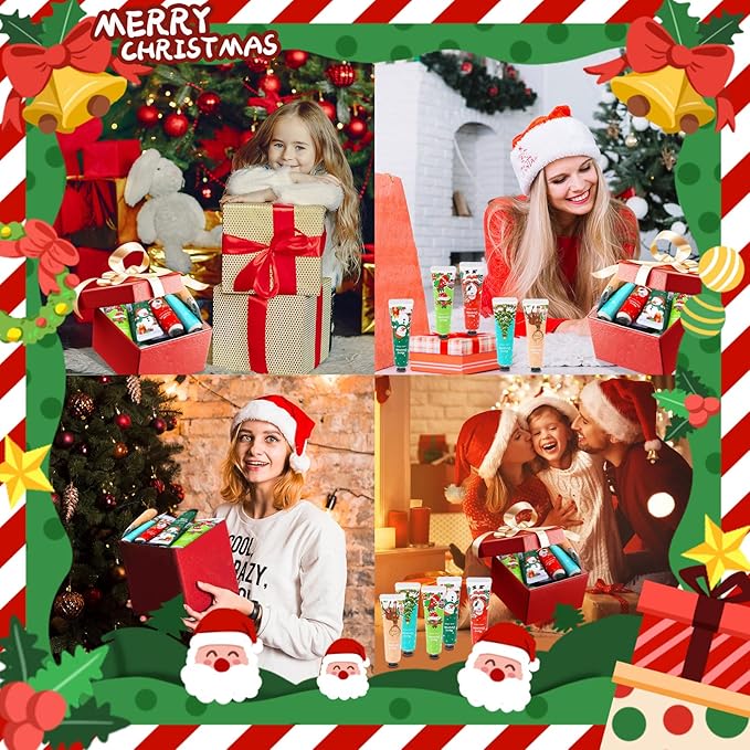 - Christmas Hand Cream Set: Hand cream (1 oz per tube) has cute Christmas patterns and colors, such as the combination of red and green, Santa Claus, snowman, Christmas tree, reindeer, Christmas socks and other interesting patterns, making it an excellent choice for holiday present