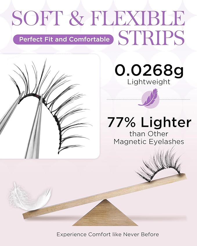 - Soft Magnets, Maximum Comfort - Say goodbye to the discomfort of hard magnets. BEYELIAN SoftHold Magnetic Lashes are designed with 0.0067g soft magnetic strips for a weightless, 0 BURDEN experience. The flexible magnetic strip conforms to your eye’s natural shape for a personalized, comfortable fit, delivering a natural blend look every time