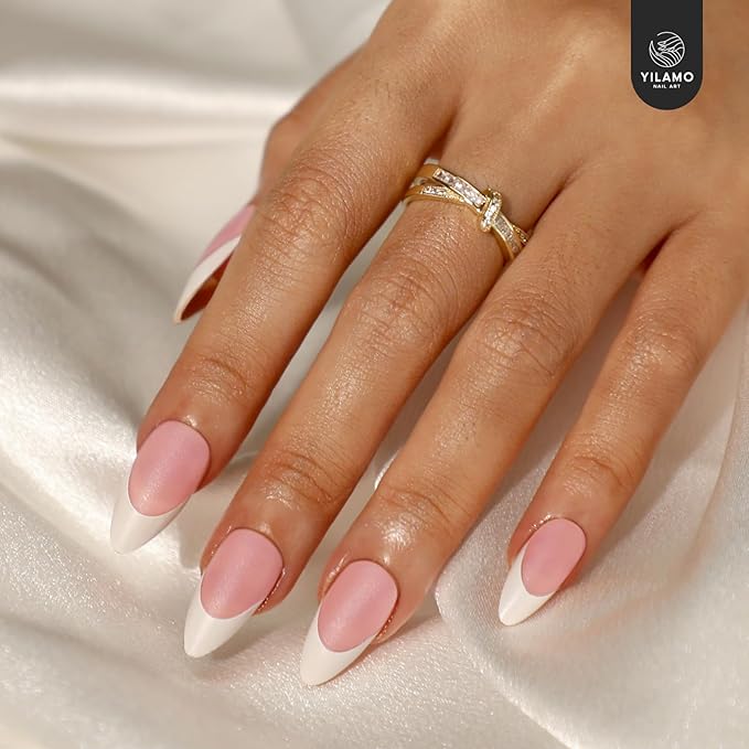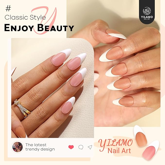 - [Handmade Step]: The french tip almond nails have been made according to the handmade process: base coat, color gel, pattern (No Top Coat). Even beginners can get a salon-like manicure in 10 minutes