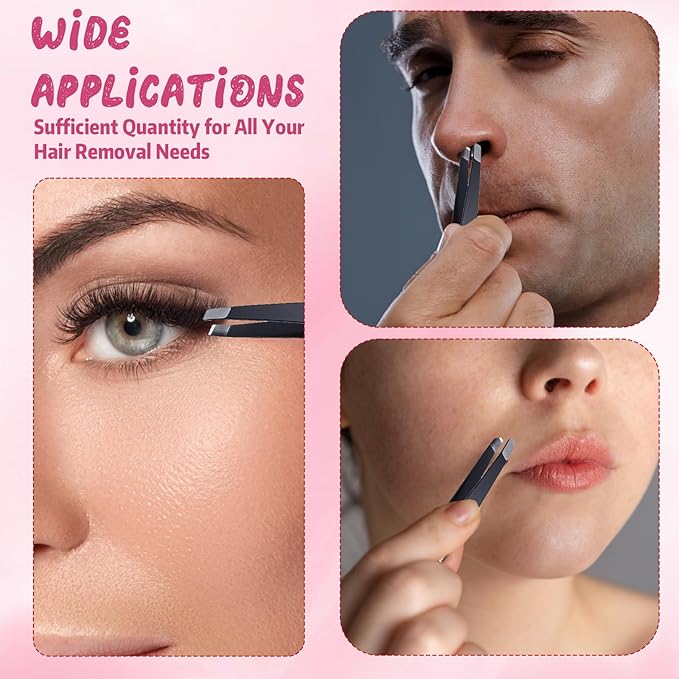 - Large Package: the set contains 64pcs stainless steel tweezers, which are of excellent quality and are the first choice of beauty professionals. They are enough to meet all your hair removal needs, and you can also share them with family and friends