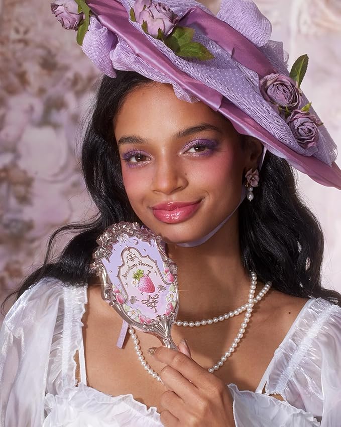 Flower Knows Strawberry Rococo Hand Mirror,Portable Vintage Handheld Mirror,Durable Metal Mirror,Cute & Aesthetic Princess Mirror,with Long Handle for Easy Holding,Gift for Girls(Wisteria Purple)