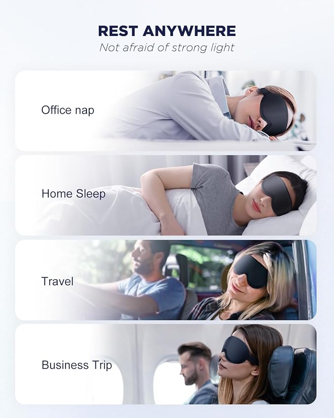 - 【Comfortable in Any Sleep Position】Luguiic 3D blackout eye mask for sleeping is made with ultra-soft gel material, whether you sleep on your back, side, or stomach, it perfectly fits your eye socket. The soft, moldable nasal bridge strip ensures optimal fit, tightly adhering to your face and blocking every trace of light. Say goodbye to disturbances and enjoy pure, uninterrupted sleep.