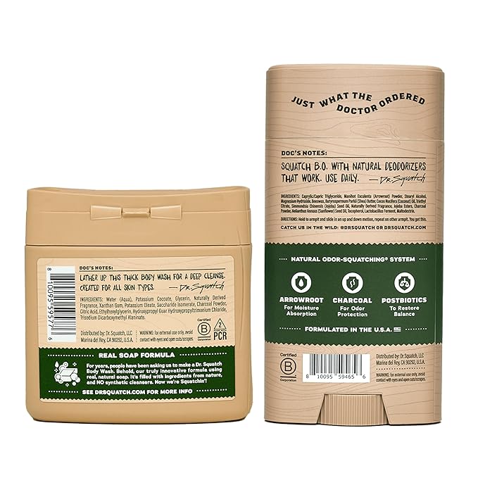 Dr. Squatch NEW Body Wash and Deodorant for Men Gift Set | No Paraben, Phthalate, Sulfate | Odor-Squatching, Aluminum-Free | Pine Tar Body Wash (8 oz, 3-Pack) & Deodorant (2.56 oz, 2-Pack)