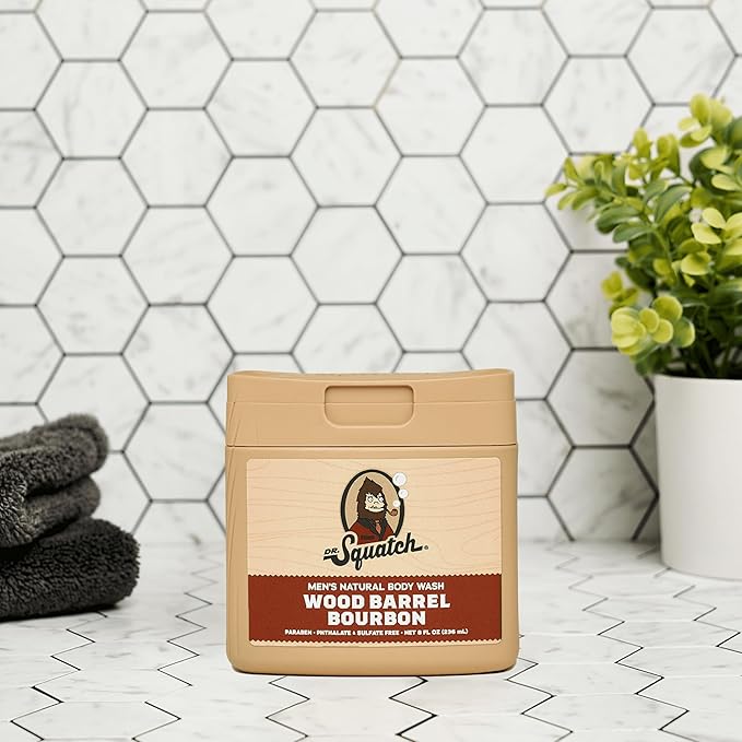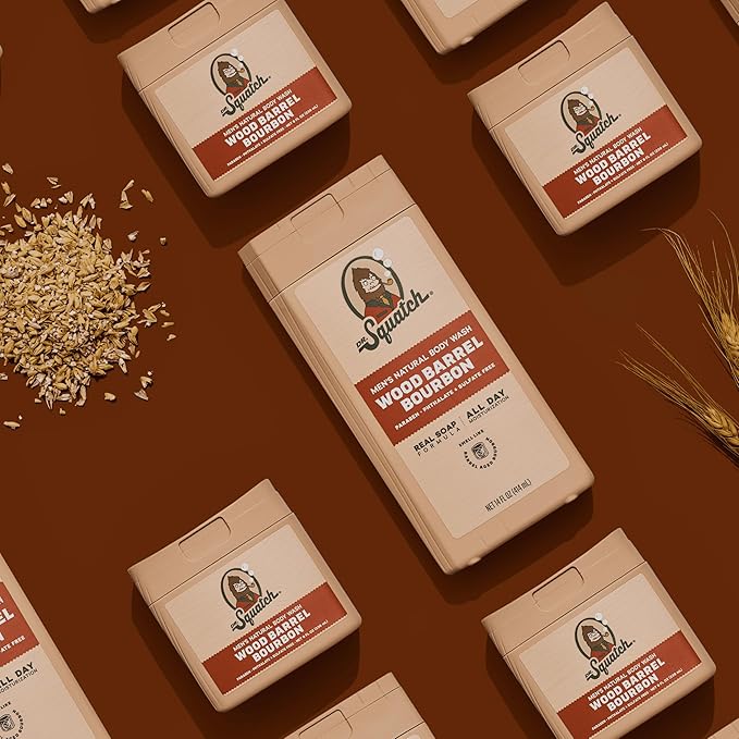 Dr. Squatch NEW Body Wash and Deodorant for Men Gift Set | No Paraben, Phthalate, Sulfate | Odor-Squatching, Aluminum-Free | Wood Barrel Bourbon Body Wash (8 oz, 3-Pack) & Deodorant (2.56 oz, 2-Pack)