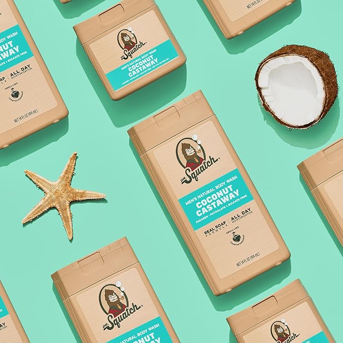 Dr. Squatch NEW Body Wash and Deodorant for Men Gift Set | No Paraben, Phthalate, Sulfate | Odor-Squatching, Aluminum-Free | Coconut Castaway Body Wash (8 oz, 3-Pack) & Deodorant (2.56 oz, 2-Pack)