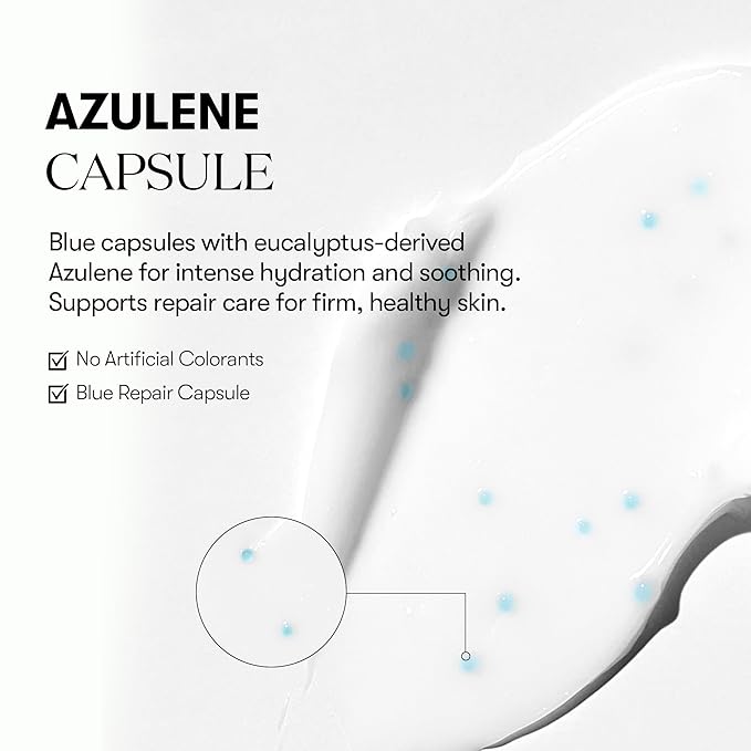 - [BLUE AZULENE CAPSULE] The blue capsule contains azulene extracted from eucalyptus, delivering exceptional hydration and soothing effects. It provides repair care to strengthen the skin's condition.