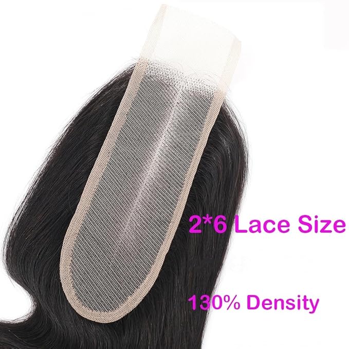 2x6 Body Wave HD Transparent Lace Closure 14 Inch Wet and Wavy 10A Brazilian Virgin Human Hair Lace Closure Natural Black