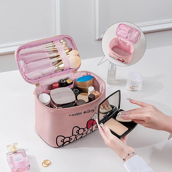 - Separate Brushes Compartment - Travel makeup bag comes with a separate space to hold your brushes and protect them from dust.There is an independent side pocket inside for lipstick, small perfume, jewelry, etc, which is very practical. Size:8.7 x 4.7 x 6.3 inches