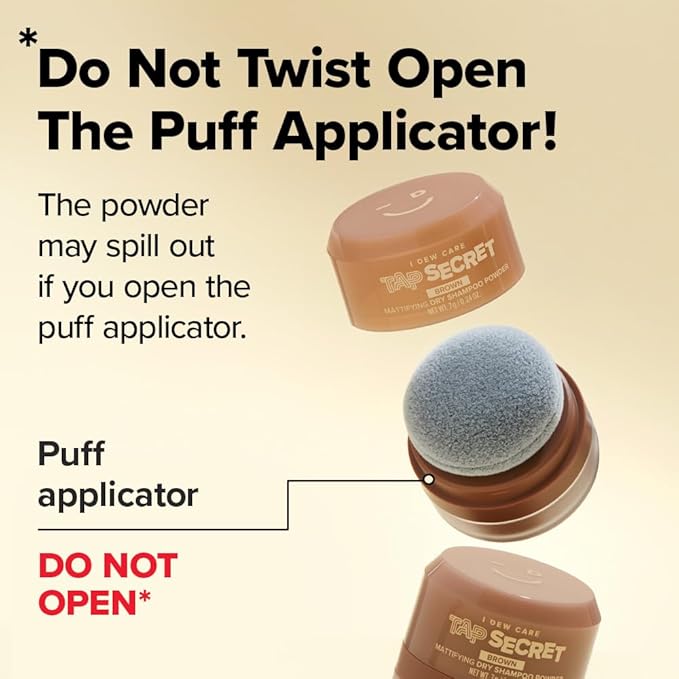 - ABOUT Tap Secret Brown: Your Grease-Busting Companion - Introducing Tap Secret Brown, the benzene-free ultra-fine dry shampoo powder in a 7g / 0.24 oz. tub. This hypoallergenic, non-aerosol gem is your guilt-free solution for instantly fresh hair.