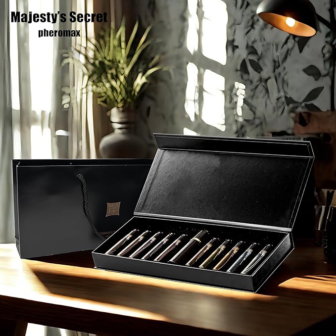 MAJESTY'S SECRET PHEROMAX Luxury Men's Cologne Sampler Sets (10 x 0.34 fl oz) – Mini Perfume Travel Set with Magnetic Cap & Gift Bag – 10 Unique Fragrances for Holidays,Beginners,Dating & Daily Use