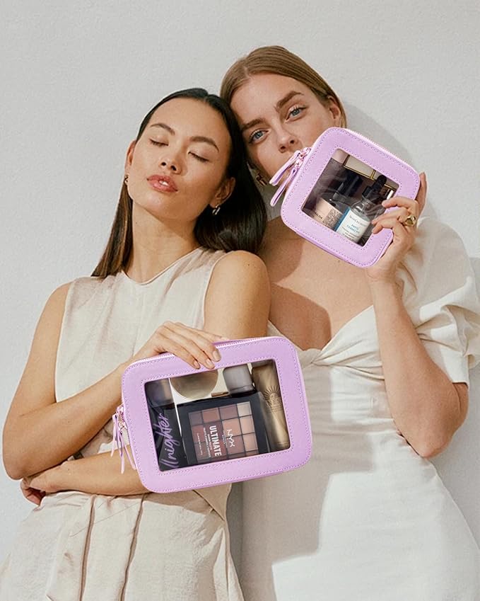 - Cute Clear Make Up Pouch: Unlike other flimsy and collapsible pvc bags, Our cosmetic organizer is are made of PU material,It is durable, waterproof, scratch-resistant, anti-collision. Together with the beautiful stitches and compact leather zippers, this make up bag is durable for long-lasting use.