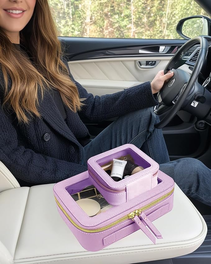 - Pick Quickly: TRAVEL TOILETRY CLEAR MAKEUP CASE designed with a clear PVC window can clear see you beauty cosmetics inside,all items at a glance,you can quickly select the required cosmetics. Size: 5.1“*5.1”*1.9“