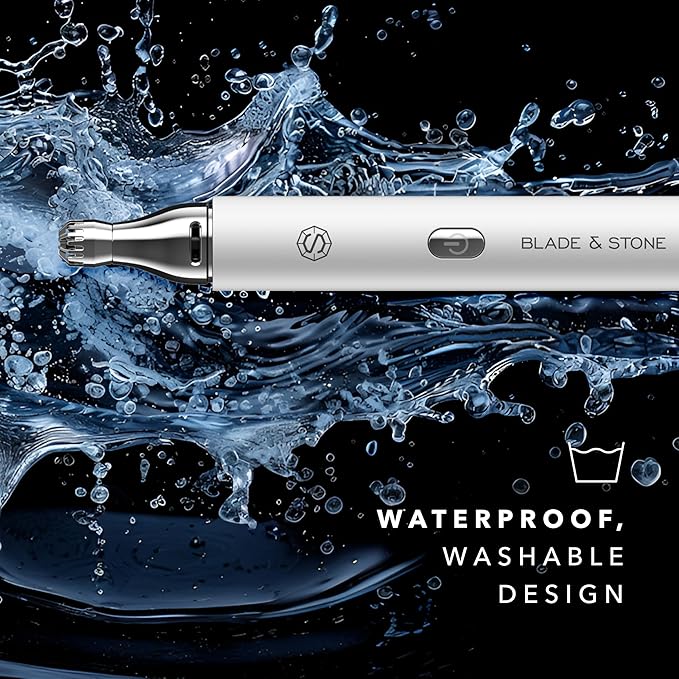 Blade & Stone™ NS501M Nose & Ear Trimmer | Graphene-X™ Blade | High-Velocity, Low-Noise Motor | Patented Rotary Blade Design | Skin-Friendly, Tug-Free Performance, Detachable Head (Snow/Silver)