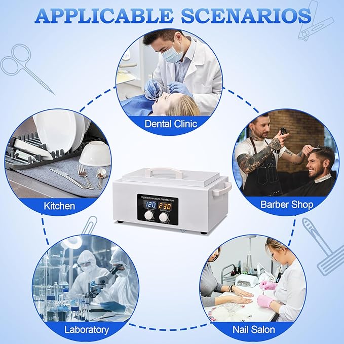 - POWERFUL FUNCTION: The high temperature nail cleaner is widely used in nail salons, dental salons, hair salons, tattoo studios and so on. It is suitable for cleaning metal, glass, porcelain, enamel and other high temperature resistant materials.