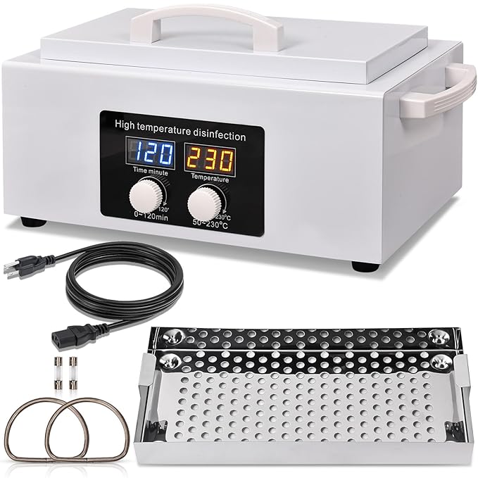 New Generation 2.5L High Temperature Metal Tool Cleaner Box, 300W Dry Heat Cleaner, 230°C Nail Tool Cleaner with LED Temperature Display and 120 Minute Timer for Cosmetic Dental Metal Tools