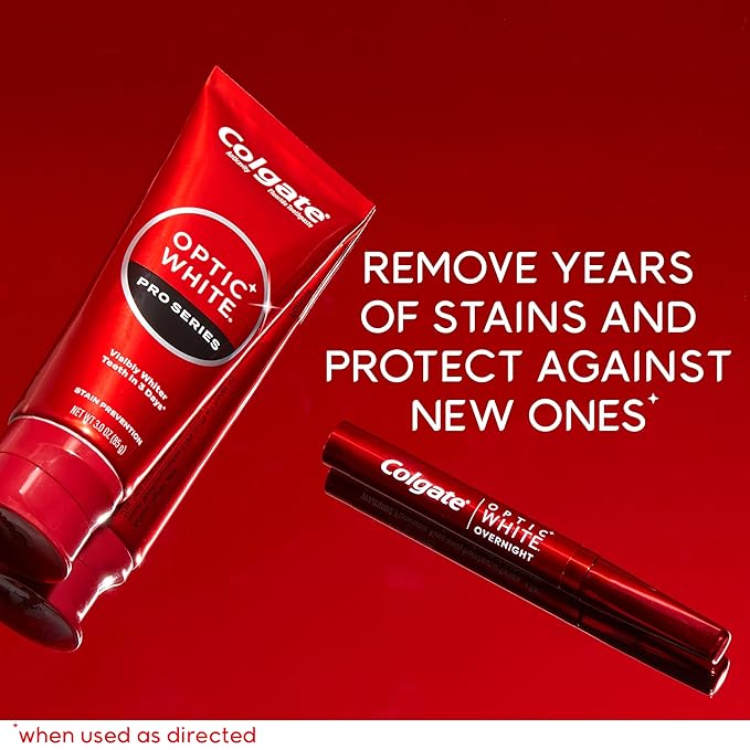 - Includes one (1) 0.08 fl oz Colgate Optic White Overnight Teeth Whitening Pen with 21 Nightly Whitening Treatments and one (1) 3.0 fl oz tube of Colgate Optic White Pro Series Hydrogen Peroxide Toothpaste