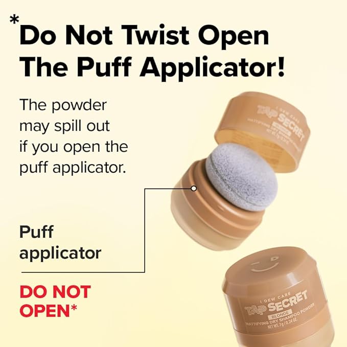 - ABOUT Tap Secret Blonde: Your Grease-Busting Companion - Introducing Tap Secret Blonde, the benzene-free ultra-fine dry shampoo powder in a 7g / 0.24 oz. tub. This hypoallergenic, non-aerosol gem is your guilt-free solution for instantly fresh hair.