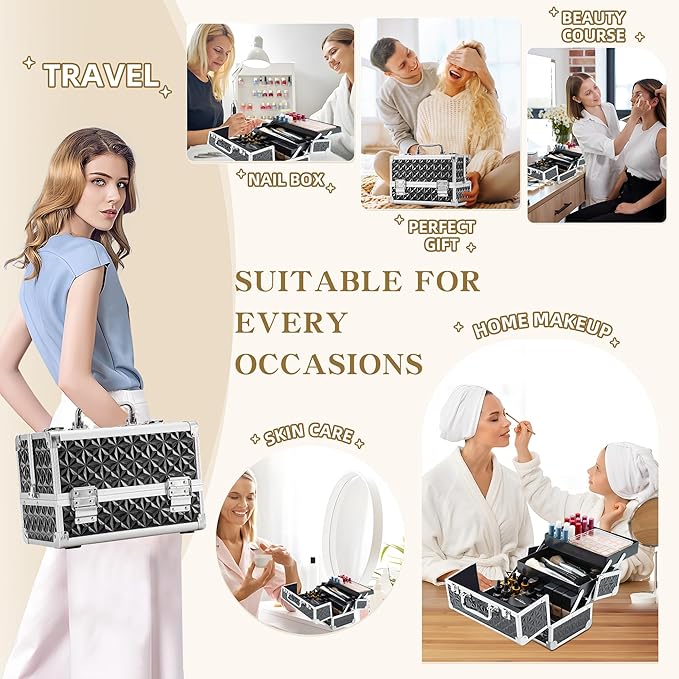 - Organize Your Makeup with Maximum Capacity This high-capacity makeup case offers versatile storage options, accommodating everything from large palettes to travel-sized bottles and nail polish. The multi-layer design allows for efficient categorization of your cosmetics, ensuring your dresser stays clutter-free. Whether you're a professional makeup artist or a casual user, this organizer keeps your beauty products within easy reach.