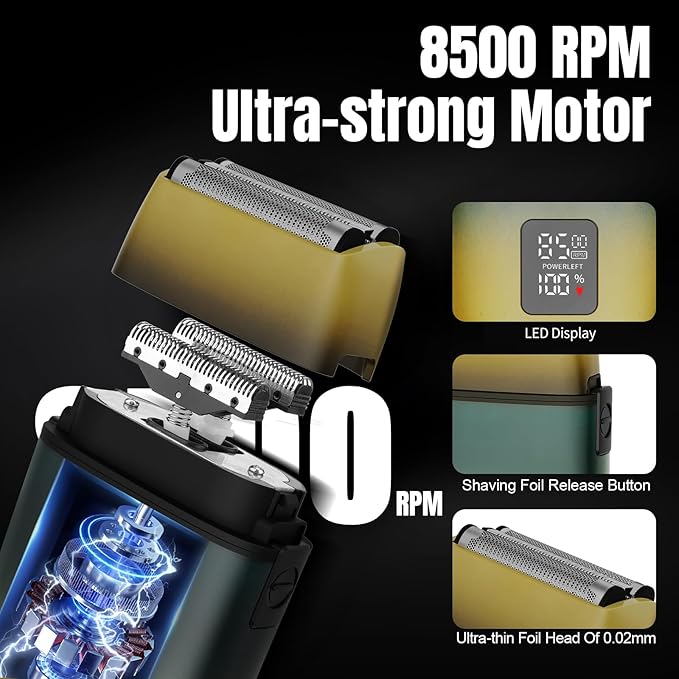 - AMAZING PERFORMANCE,EXCEPTIONAL BATTERY LIFE- Built-in rechargeable high-capacity safety battery, It supports cord/cordless use, the professional hair clippers can work 180 minutes. The shaver has a high speed of 8500 rpm to give you an easy, residue-free shave