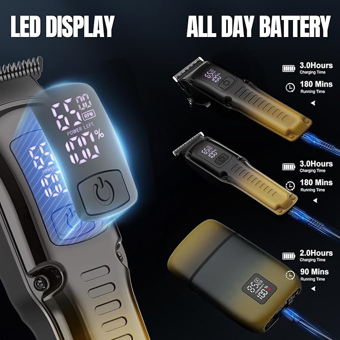 - FULL BARBER SET- Includes Clipper, Trimmer and Shave for home and professional haircuts. Receive everything you need to achieve a full haircut,Nice quality set for all your grooming needs. This trimmer set is the barber or stylist's favourite
