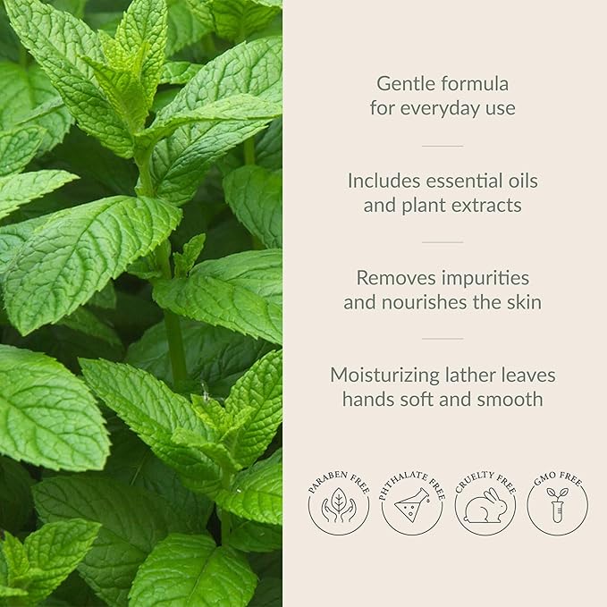 - Mint Scented Hand Wash: Infused with Wild Mint, Fresh Basil, and invigorating Mandarin, this essential oil driven hand wash delivers a revitalizing fragrance with every use. Enriched with natural ingredients to nourish and soothe, it brings a spa-like luxury to your daily routine, leaving hands refreshed and delicately scented.