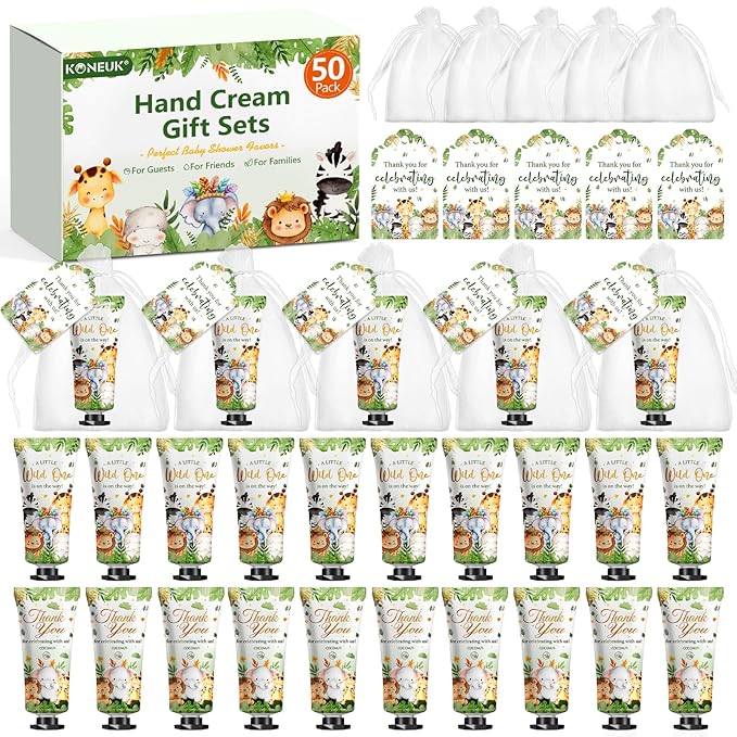 50 Pack Baby Shower Bulk Hand Cream Gifts Sets, Baby Shower Favors and Bridal Shower Favors for Guests with Thank You Card and Organza Gift Bags, Birthday Gifts, Appreciation Gifts for Guests (Animal)