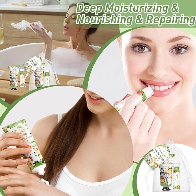 - 【Ideal Baby Favors for Guests】Our baby shower gift set is packaged with animal elements,not only cute but also very attractive.The perfect color combination and pleasant fragrance are perfect for baby shower favorites and party festivals,allowing every guest attending the event to receive a unique gift