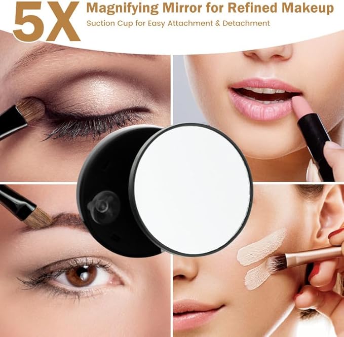 - ✅Detachable 5x Magnification Mirror: 5x magnification mirror attachment ideal for detailed makeup application, grooming, or skincare routines.