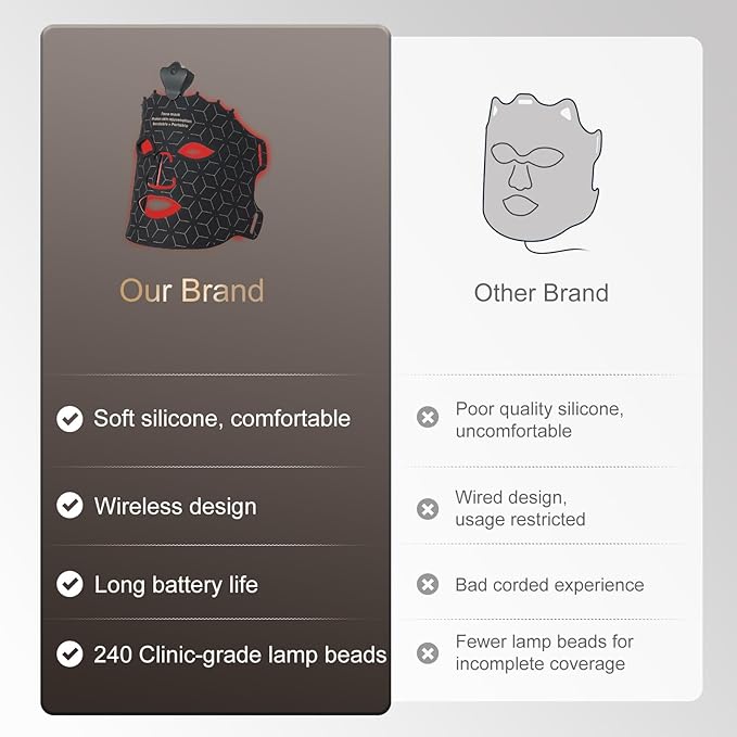 - Comfortable& Soft Silicone: Made of silicone which is soft and comfortable, it’s foldable and easy to store with a weight of 0.24kg, adjustable straps allow you to adjust the red light face mask to a suitable position making sure they hug the face a little bit better