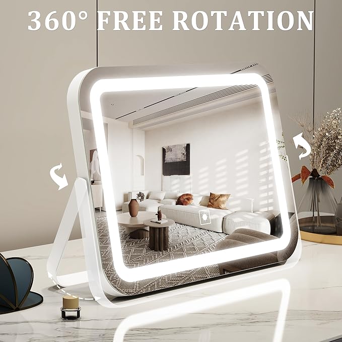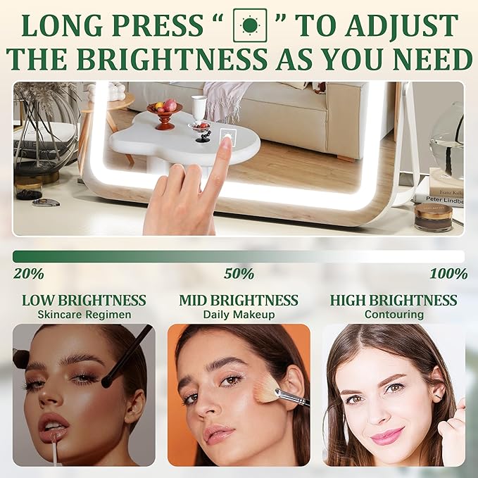 - 【Brightness Adjustable & 3 Color Lighting Modes】 Select your favorite lighting with the touch button, three color temperature options from warm light (3000K), natural light (4500K) to cool light (6000K), and also supports 20% - 100% brightness adjustment ; simulating lighting in various occasions to meet personal makeup needs.