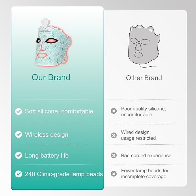 - Comfortable& Soft Silicone: Made of silicone which is soft and comfortable, it’s foldable and easy to store with a weight of 0.24kg, adjustable straps allow you to adjust the red light face mask to a suitable position making sure they hug the face a little bit better