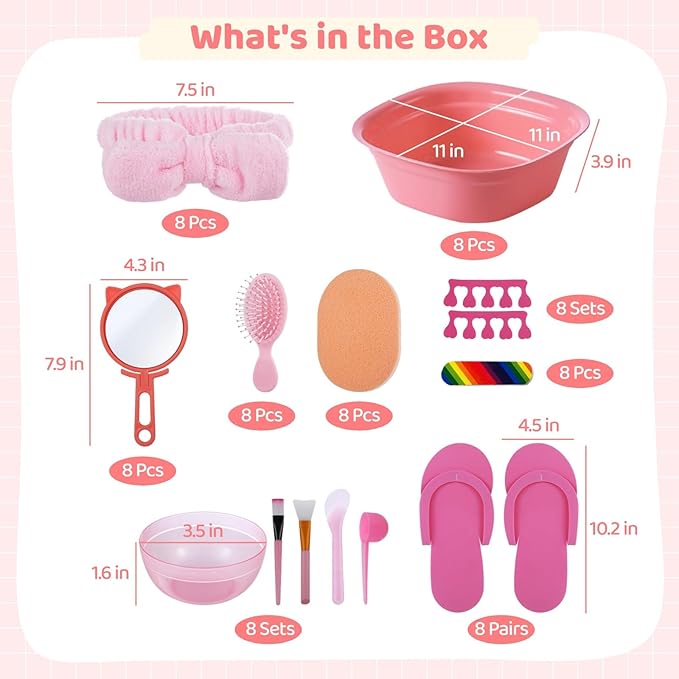 - 【Perfect for Various Occasions】With the included tote bags, you can easily carry all the SPA supplies to different occasions. Meticulously crafted, this kit is perfect for the use as spa party favors, photo props, party rewards, sleepover party supplies, etc., bringing a fun and colorful party experience.