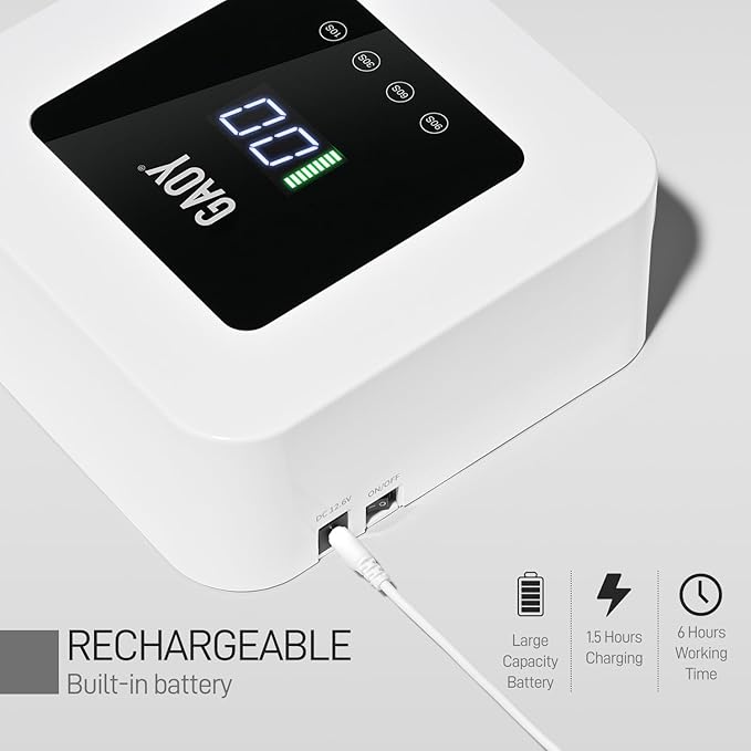 GAOY Cordless UV LED Nail Lamp for Gel Nails, Rechargeable UV Light, Professional Nail Dryer with 4 Timers, Automatic Sensor and Sensitive Mode for Fast Curing, White