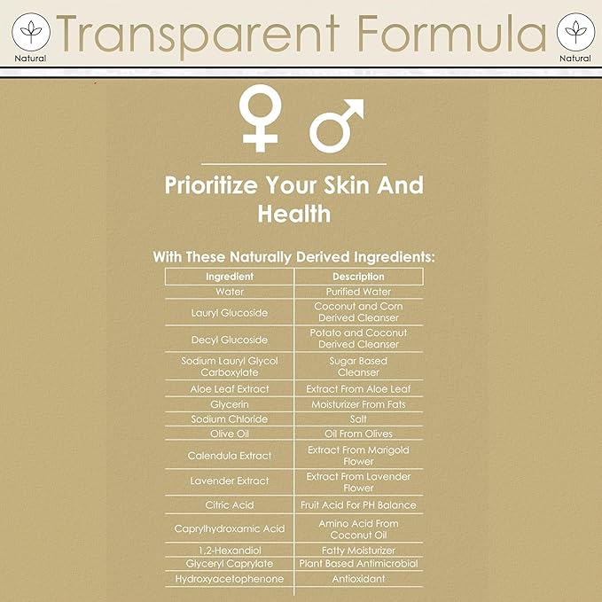- Nourishing Cleanse: Olive oil, aloe vera extract, and lavender extract leave your skin feeling soft, smooth, and refreshed.