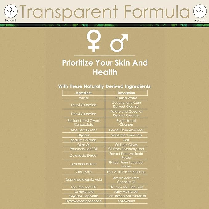 - Nourishing Cleanse: Olive oil, aloe vera extract, and lavender extract leave your skin feeling soft, smooth, and refreshed.