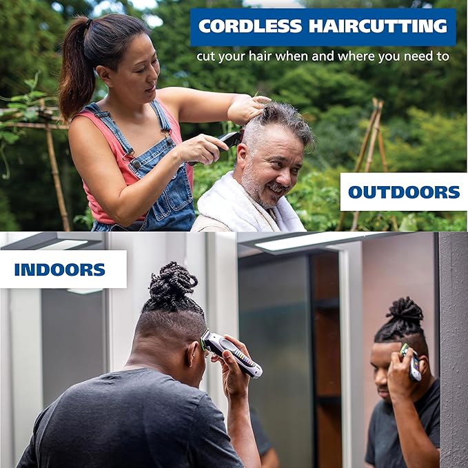 - Smart Charge Technology - Stay informed with this cordless hair clipper kit’s smart display light that indicates battery power status: solid blue when fully charged, solid red while charging, and flashing red when low power.