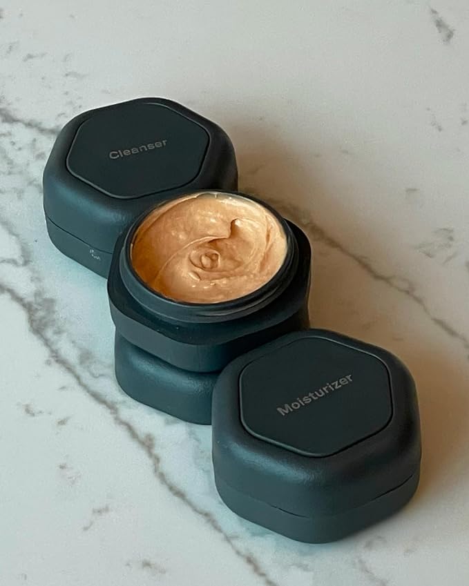 Cadence Travel Containers - Basic Skincare Set - Magnetic Travel Capsules - Facial Cleanser, Moisturizer, Sunscreen - 3 Small Capsules (0.56oz) with Cleanser, Moisturizer & Sun-Icon Label - Pacific