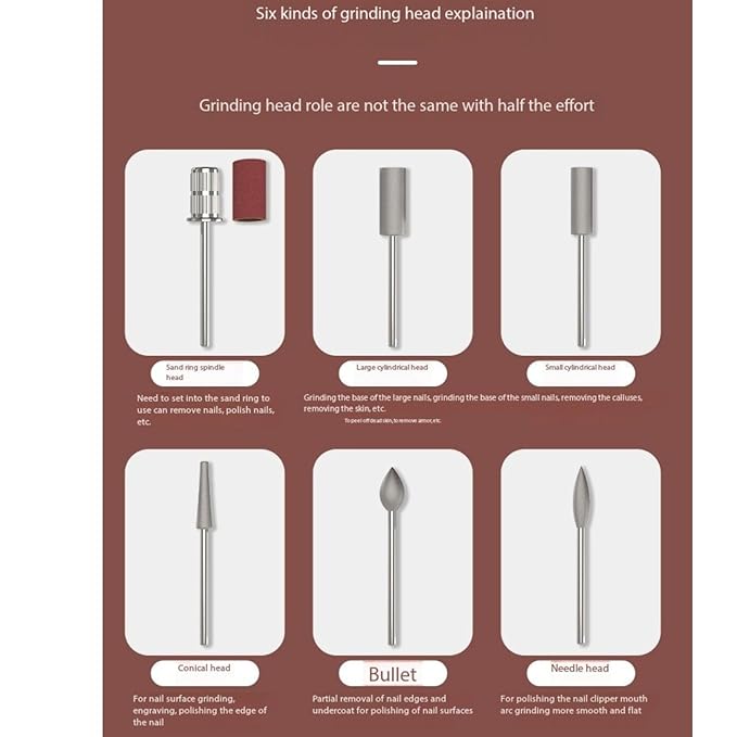 - Safety Protection SystemWith the twist lock system, the nail file drill pen allows you to change the drill bit easily and make sure the drill bit won't slip off during use. When the acrylic nail drill is overloaded or improperly installed, the self-protection system will be activated within 4 seconds (shown on the LCD display and stops working) to protect your hands and nails from injury. Dual protection for efficient and safe use