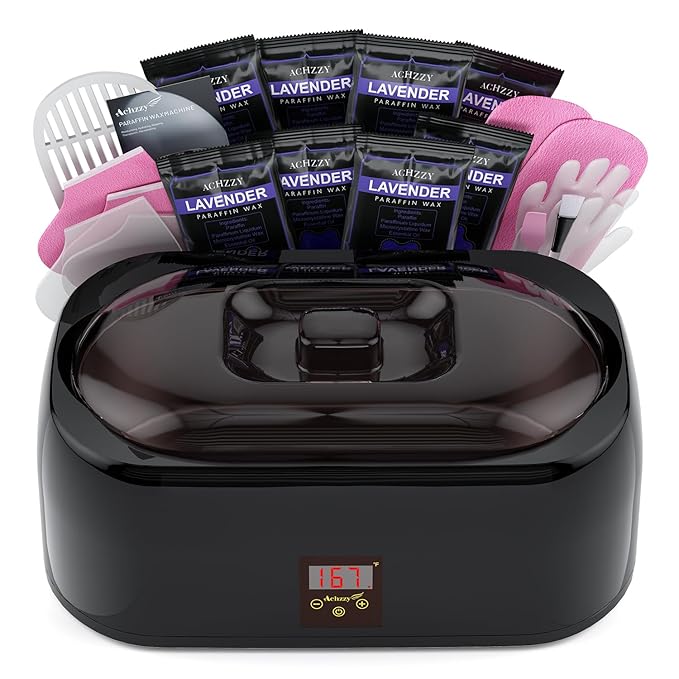 - SAFE, EFFINCIENT AND HASSLE-FREE SHOPPING - The Achzzy hand wax paraffin machine is designed for user safety and convenience, with a simple interface, reliable temperature regulation, and quick wax melting for a spa-like treatment experience at home. Meanwhile, Experience 24/7 customer service and a one-year factory warranty with Achzzy Paraffin Wax Machine for Hands. We are dedicated to providing you with the best support and ensuring your satisfaction.
