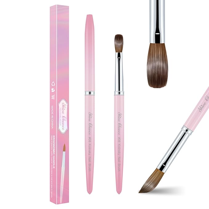 Acrylic Nail Brush Size 08, 100% Pure Kolinsky Nail Brush for Acrylic Application, Professional Nail Extension Manicure Tool Nail Drawing Pen for DIY Home Salon(Pink)