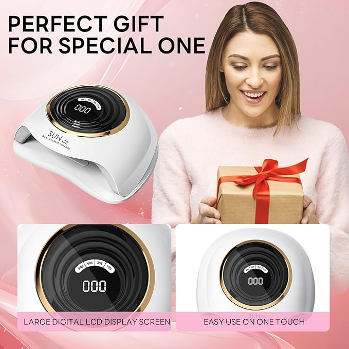 - [Large Clear Screen & 4 Timers] This professional uv lamp has large LCD display shows the usage time,help you to use the uv light properly with definite timers on the screen,makes your curing process more visible.4 timer settings,10s/30s/60s/99s to meet your different curing needs.Experienced nail stylists can quick-select corresponding curing time for specific nail gel polish.