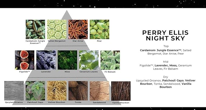 - The 3rd scent in the Perry Ellis SKY Collection, Night Sky is an exclusive invite to lose oneself under the stars. Fresh, woody, long-lasting character - wearable with any weather and for every occasion.