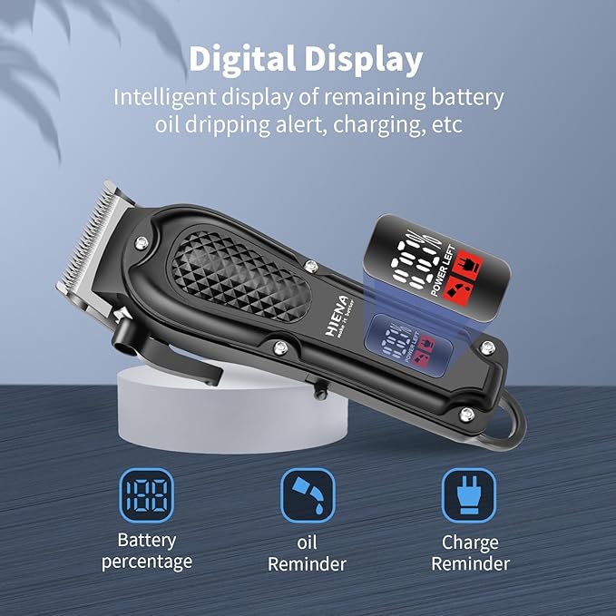 - 【Smart LCD Display】The larger hair clipper and nose hair clippers in the hair cutting kit features a clear smart LED screen that shows the battery percentage from 0 to 100. It also includes intelligent reminders for charging, refueling, and cleaning, making it convenient for users to access various status displays.
