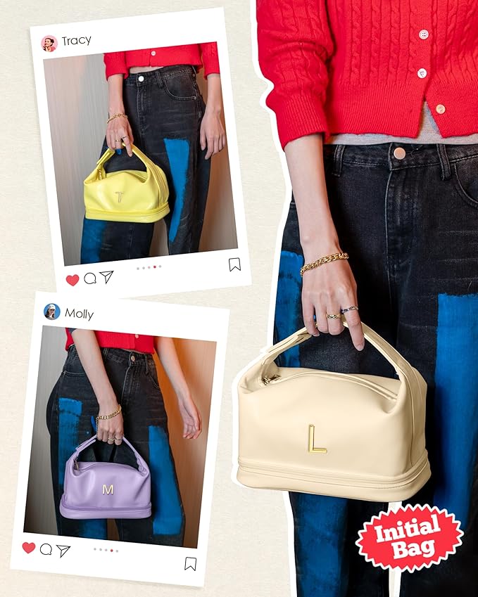 - 【Double-layer Design】The monogrammed makeup bags is double-layer with a unique design of upper and lower storage areas. The bottom compartment is great for storing cosmetics, eye shadows, makeup brushes, and other items. The top layer features a large opening for easy access, along with two small compartments for lipsticks and earrings.