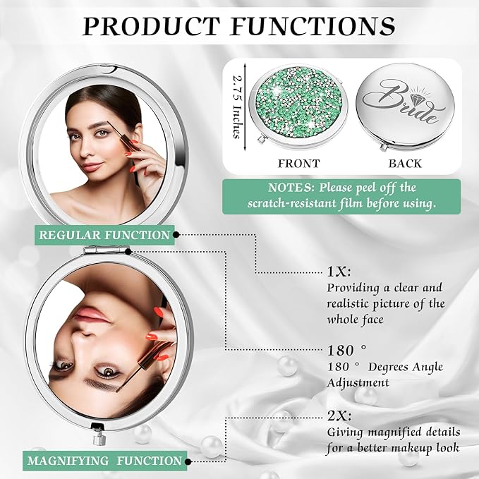 - Functional and Purposeful: each compact makeup mirror features a regular side and another with a 2X magnification effect, this ingenious design allows for detailed makeup checks, ensuring your bridesmaids always look their best