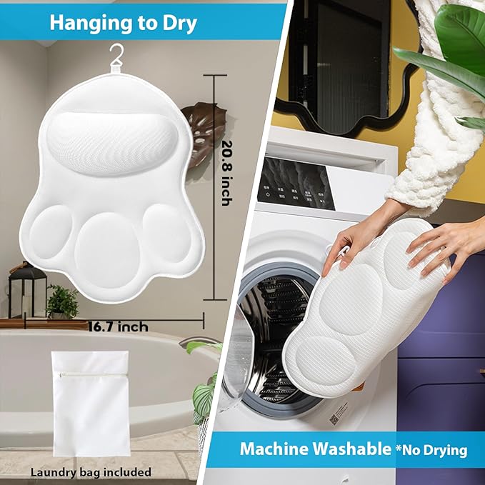 - β¨ Machine Washable & Easy to Maintain β Cleaning is a breeze with our machine-washable bath pillow. It comes with a convenient laundry bag to protect the pillow during washing, and a built-in hanging hook for easy drying. Keep it fresh and clean with minimal effort after each use
